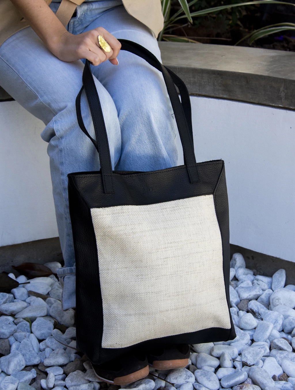 - Cartera de cuero y rafia en la parte de adelante. De colgar al hombro.