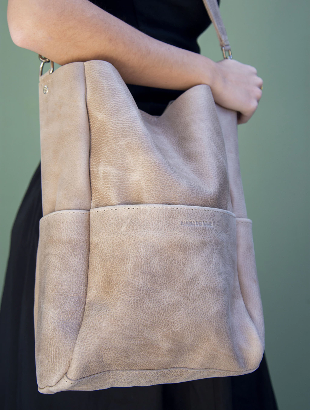 - Medidas: 26 cm ancho x 40 cm alto. Fuelle de 14 cm. Manija de 4 cm de ancho y 75 cm de largo.