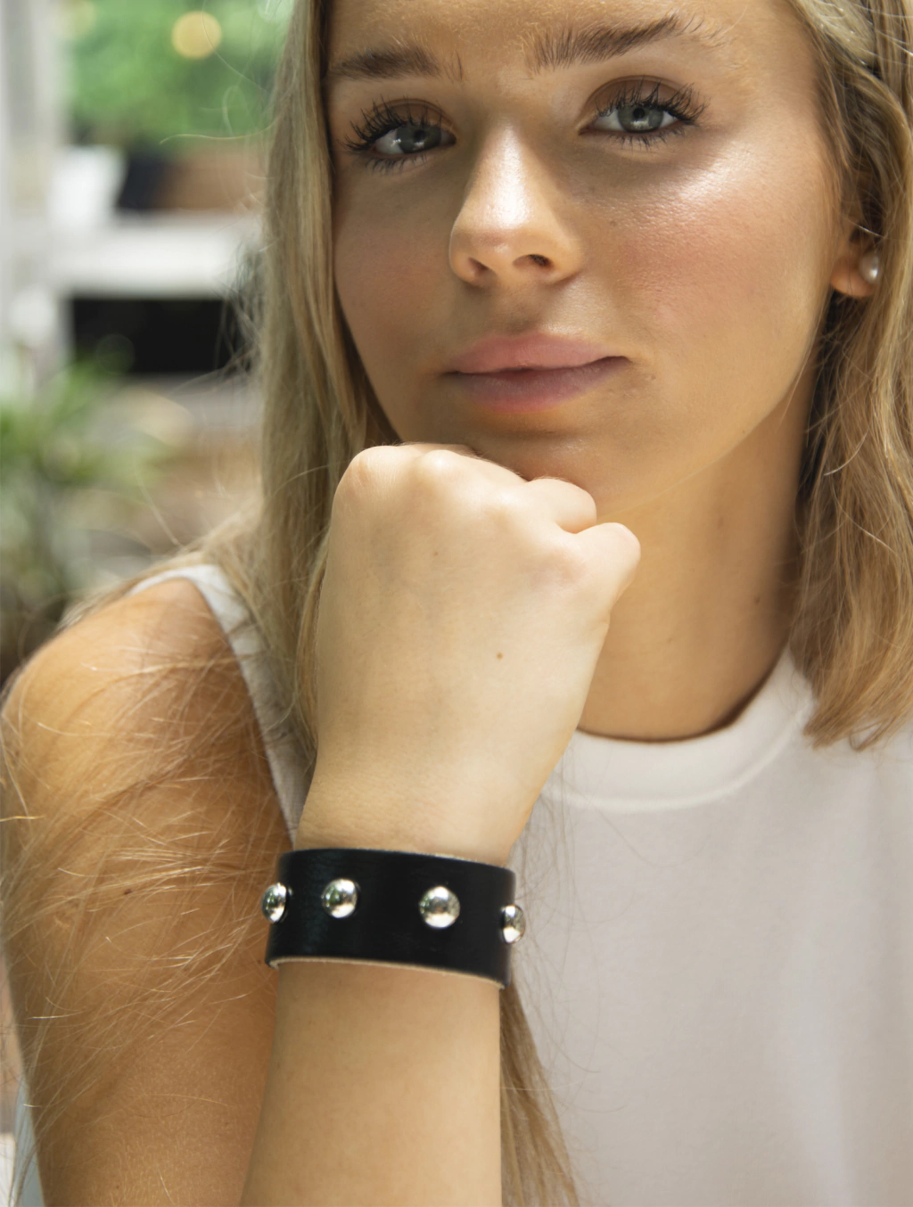 - Pulsera de cuero con tachas.
